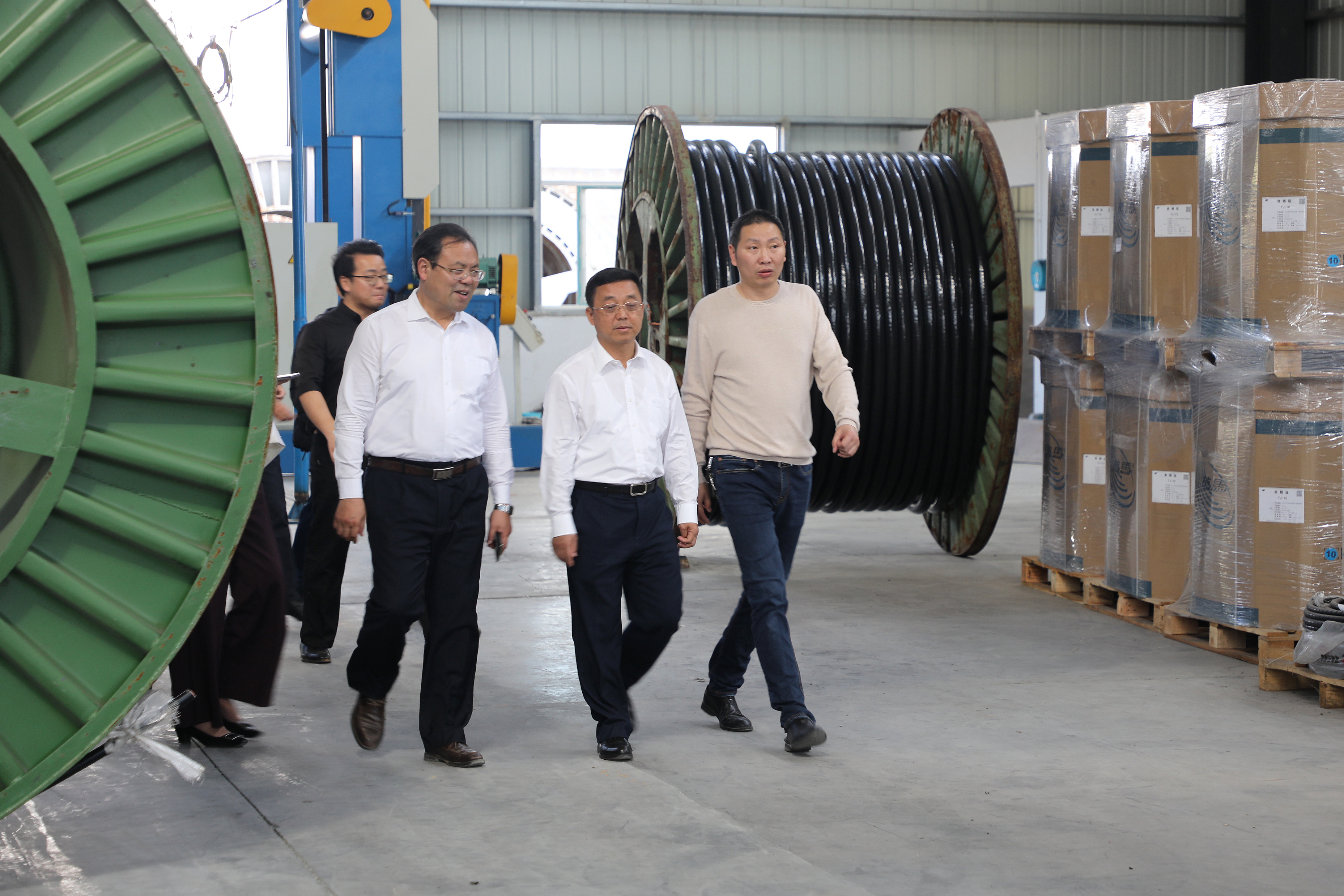 劉副市長一行人深入車間,對電線電纜以及三湘電纜的發展進行進一步的了解。參觀過程中,劉副市長對電線電纜生產工藝產生了濃厚的興趣,在車間內詳細詢問了三湘電纜的生產工藝和銷售情況,得知三湘電纜是永州本土的優秀企業后對三湘電纜的邵商企業精神表示敬佩,同時對三湘電纜所生產的線纜產品豎起了大拇指。