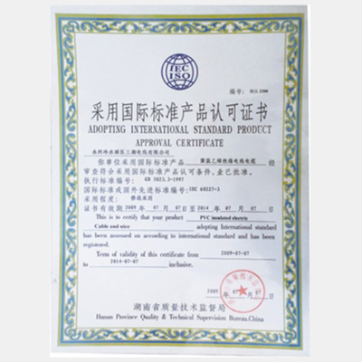 采用國際標準產品標志證書